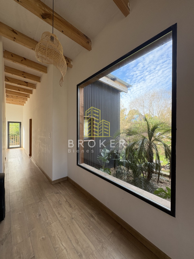 La casa cuenta con 2 acogedores dormitorios y 3 baños, incluyendo 2 suites, ofreciendo privacidad y comodidad para hasta 5 personas. Su amplia cocina se integra perfectamente con el luminoso living comedor, creando un espacio ideal para compartir y disfrutar de la calidez del hogar.